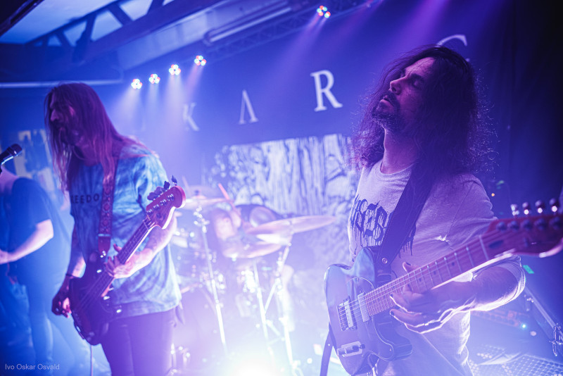 Nasledujúce chvíle patrili prvej z dvoch rakúskych formácií. KARG vedie spomínaný V. Wahntraum, ktorého možno poznáte ako speváka známejších HARAKIRI FOR THE SKY. Aj v dnešnom (svojom pôvodnom) projekte zostáva verný post-blackovým vodám, pričom na pódiu okrem vokálov hrá aj na basu. O hudobnú zložku sa postaralo duo gitaristov, resp. ich súhra prepracovaných gitarových harmónií a pomerne melodických riffov. Často len repetitívne motívy v sebe skrývali príjemnú melanchóliu, ale aj ďalšie emócie. Jediným kameňom úrazu tak bol hlavný vokál samotného frontmana. Jeho monotónny rev ma prestal baviť už v HFTS, a renomé si nezlepšil ani dnešným výkonom v hudobne inak pútavom KARGu.