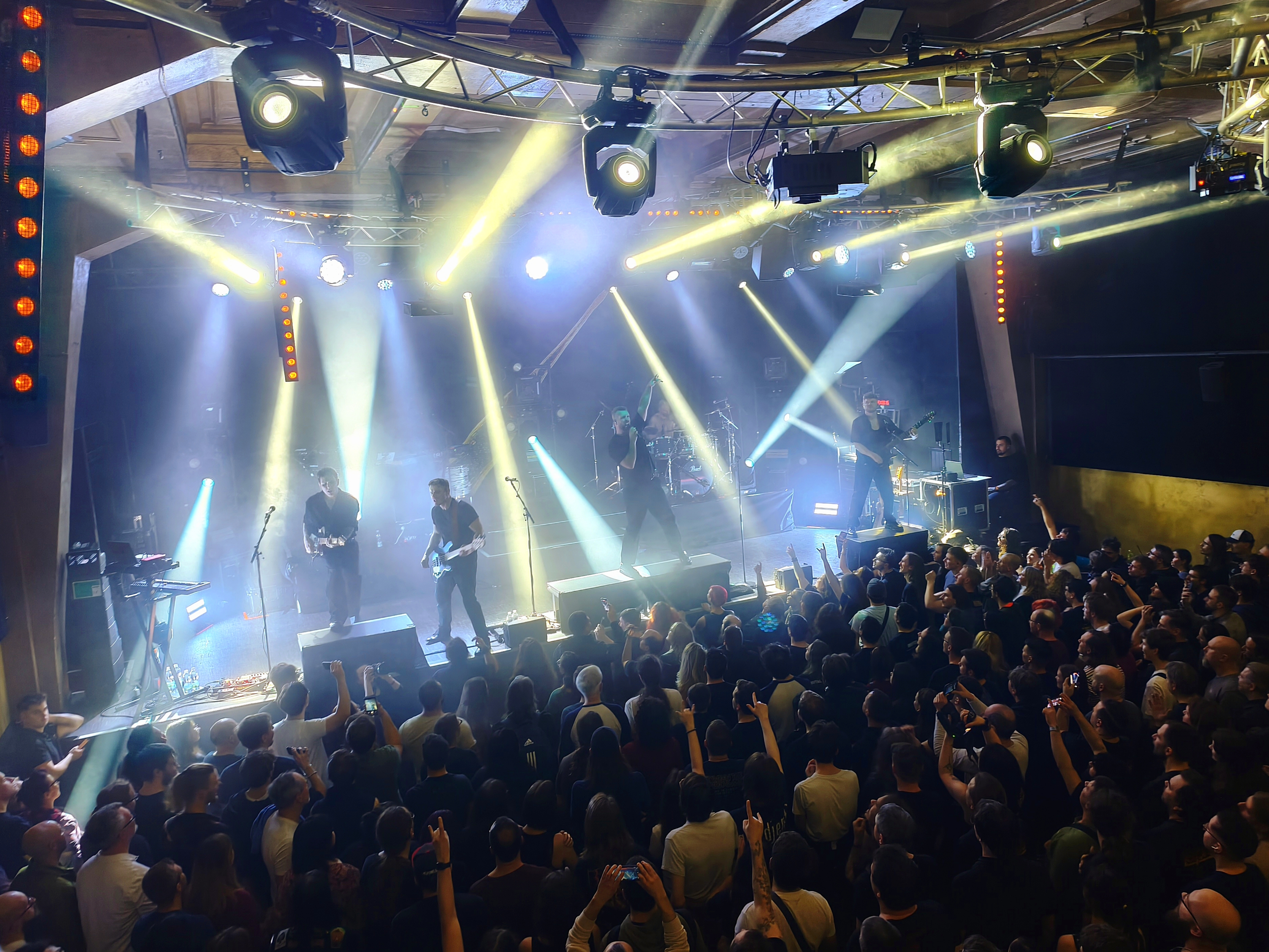 Niekoľko dní pred štartovným výstrelom hlásili organizátori od Obscure Production upozornenie na vysoký počet predaných vstupeniek, takže spomínané priestory určite neboli ďaleko od nálepky „vypredané“. V husto zaplnenom Roxy som preto strategicky zaujal pozíciu hore na vyvýšenom balkóne. Ten svojou predispozíciou zaručoval skutočne nádherný výhľad, a ako som sa počas celého večera i sám presvedčil, tak aj fantastické zvukové ošetrenie.