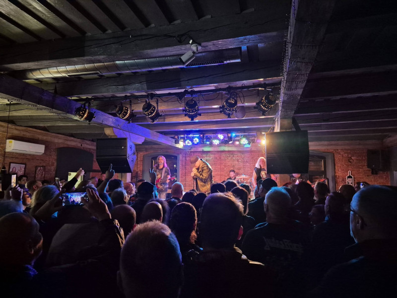 Dnes sa však čakalo na skutočnú hviezdu. RC Mlyn sa v ten večer slušne naplnil a účasť odhadujem na niečo okolo 150 divákov, pričom väčšina bola v klube už počas predkapely. Ripper vkráčal na pódium úplne nečakane a chlapík, ktorý mimo pódia pôsobí dosť nenápadne, si všetkých prítomných podmanil od prvej sekundy. V typicky heavymetalovej koženej bunde, ako stelesnenie heavy metalu, koncert zahájil temnou skladbou „Jugulator“ z rovnomenného albumu, ktorý nahral s JUDAS PRIEST on osobne. Tu by som dodala, že samotní „Judáši“ Ripperovu éru v súčasnosti úplne ignorujú, preto to bola perfektná príležitosť vychutnať si túto na pomery JUDAS PRIEST nezvyčajne tvrdú pieseň s thrashovým feelingom prakticky v origináli. V porovnaní s vystúpením v Nitre na jej úkor vypadla ikonická „Ripper“, ktorá zaznela podľa mojich informácií aj v Nitre - síce Halfordova stará vec, no samotnému Owensovi dala prezývku. Druhý Ripperov album „Demolition“, ktorý stihol vydať s JUDAS PRIEST, bol zastúpený skladbou „Hell is Home“, ale samozrejme došlo aj na klasiky „Breaking the Law“, „Electric Eye“ alebo „Living After Midnight“. V mojich očiach sú trochu povinnou jazdou a tvorili pre mňa najmenej zaujímavé časti setlistu, avšak na publikum to fungovalo a to sa náramne zabávalo. Nehovoriac o tom, že Ripperov vokál a celkový prejav bol excelentný, nech by som sa akokoľvek snažila, nenašla som na ňom chybičku.