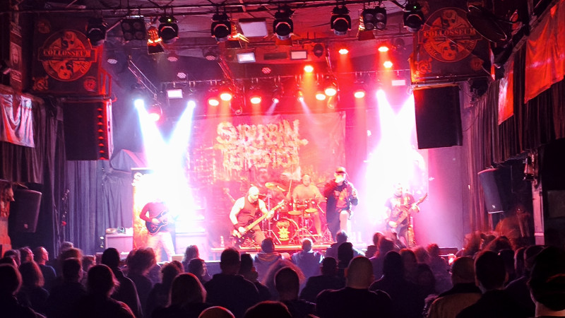 Pohľad do vopred avizovaného programu predpovedal nadštandardne štedrých päťdesiat minút pre SUBURBAN TERRORIST. Veľkým prekvapením bolo, že po naplnení prvej polovice tohto času sa chalani lúčia a mávajú do publika. Obrovská škoda, lebo to, čo sa udialo predtým, možno označiť za parádne surovú, energickú nakladačku o sile rovnice „úder kladiva = rozbitá hlava“. Rýchle sypanice sa umne striedajú groovy pasážami a tie doslova nútia početné publikum k pohybu. Pätica starostlivo prevetrala obe štúdiovky “Cut-Throat From the World of Obsession“ a “Inhuman Breed“.